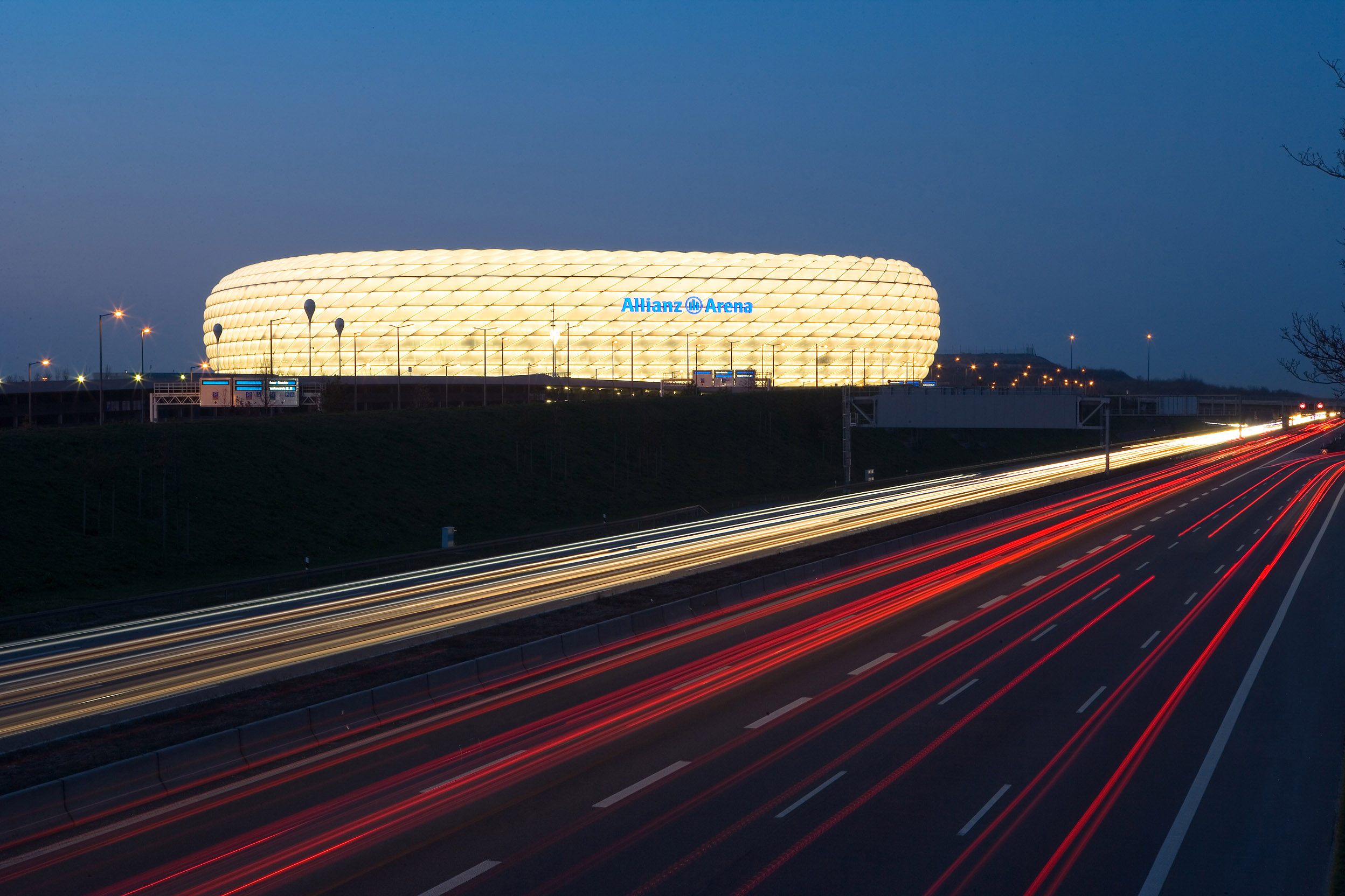 Allianz Arena bei Nacht, photographiert von Mark Zanzig